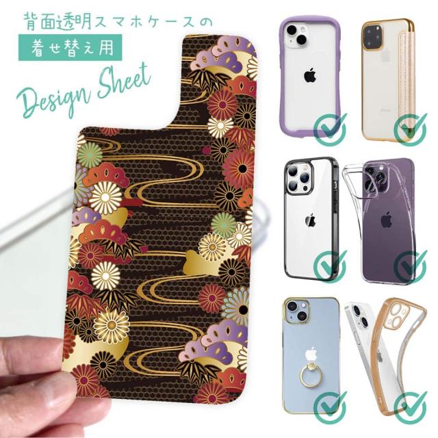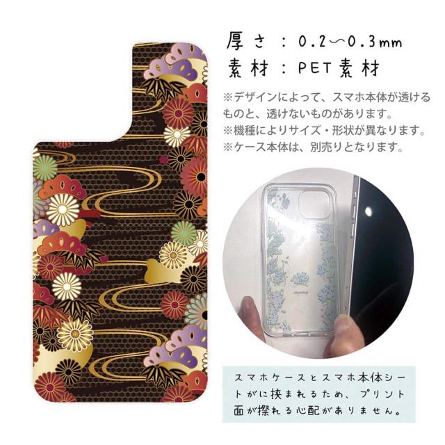 スマホケース iPhone Google Pixel Xperia Galaxy AQUOS arrows 着せ替え シート インナーシート スマホカバー 背面 透明 クリア オリジナル デザイン 着物柄 金屏風