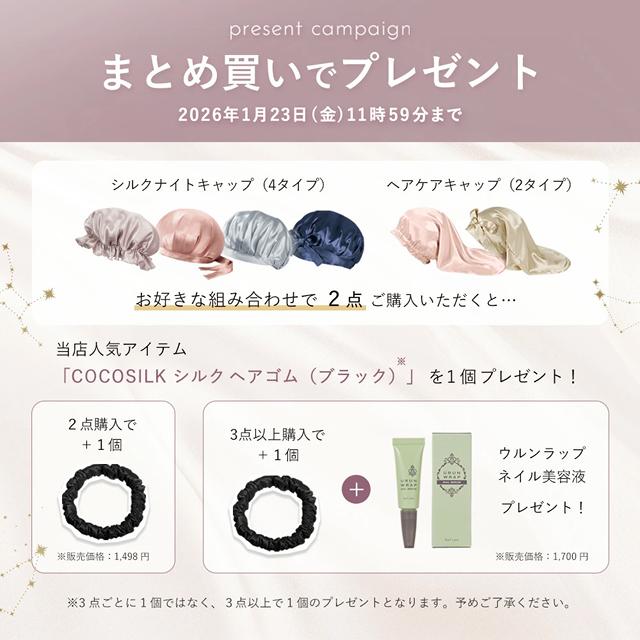 | 商品名 | COCOSILK ヘアケアキャップ ロングヘア ゴム タイプ |