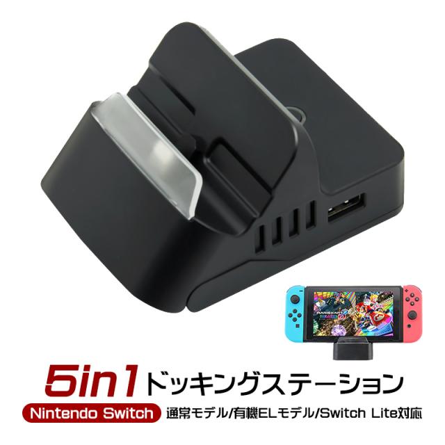 | Nintendo Switch Switch Lite対応 5in1 ドッキングステーション 通常モデル 有機ELモデル対応 充電ドック [HS-SW340] 有線LAN イーサネット HDMI テレビ出力 USB 有線コントローラー接続 |