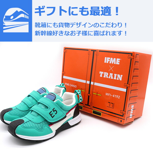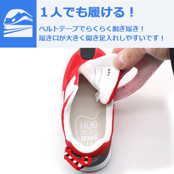 新幹線の人気車両を再現したかっこいいデザインのイフミーキッズシューズです。