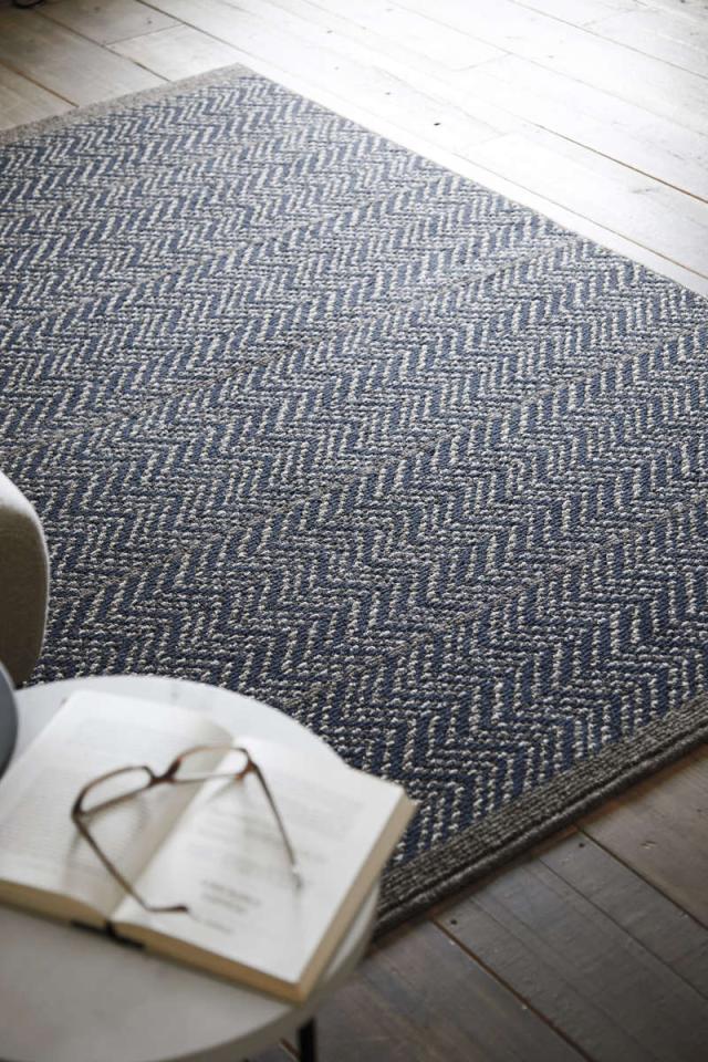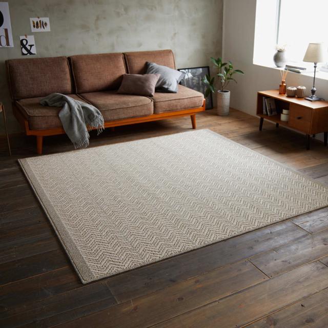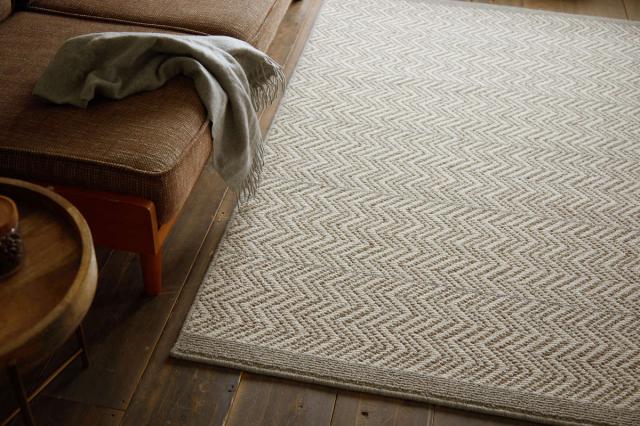 英国羊毛100%使用したウールラグです。英国紳士に愛されるツイードジャケットをモチーフとし、ツイードの伝統柄であるヘリンボンをアレンジしたデザインです。細かい柄域はシックな雰囲気のインテリアにも最適です。