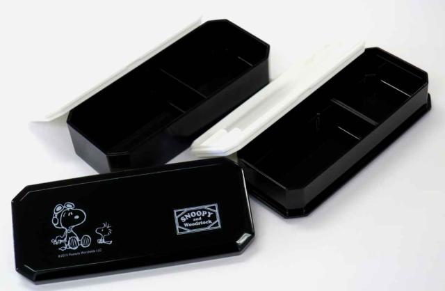 お弁当箱 2段 松花堂弁当箱 スヌーピーBlack 600ml ( SNOOPY 食洗機対応 弁当箱 ランチボックス 二段 食洗機OK お弁当 弁当 箸付き 仕切り付き 中子付き ランチベルト付き )