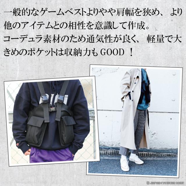 一般的なゲームベストよりやや身幅を狭め、より他のアイテムとの相性を意識して作成!
