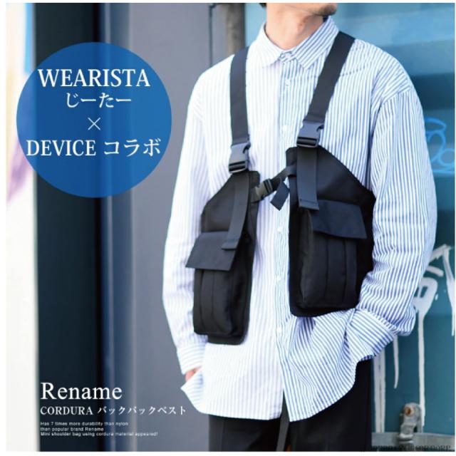 DEVICE Rename デバイス ベスト型 バッグ ボディバッグ ゲームベスト メンズ Rename リネーム ベスト型バッグ コーデュラ バックパックベスト RBN90069 じーたー WEARISTA 男性 Instagram インフルエンサー キャンプ 釣り アウトドア クリスマス プレゼント ギフト
