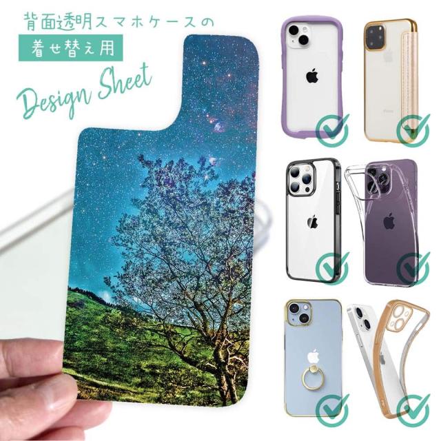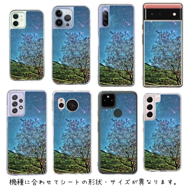 スマホケース iPhone Google Pixel Xperia Galaxy AQUOS arrows 着せ替え シート インナーシート スマホカバー 背面 透明 クリア オリジナル デザイン 星柄 星空 宇宙 星空のグランジ