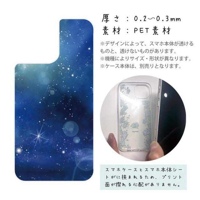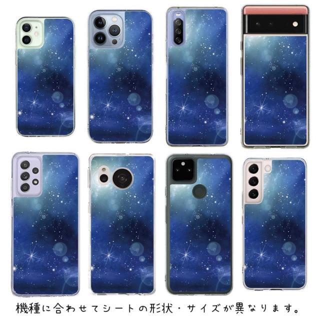 スマホケース iPhone Google Pixel Xperia Galaxy AQUOS arrows 着せ替え シート インナーシート スマホカバー 背面 透明 クリア オリジナル デザイン 星柄 星空 宇宙 ティマイオスのブルー