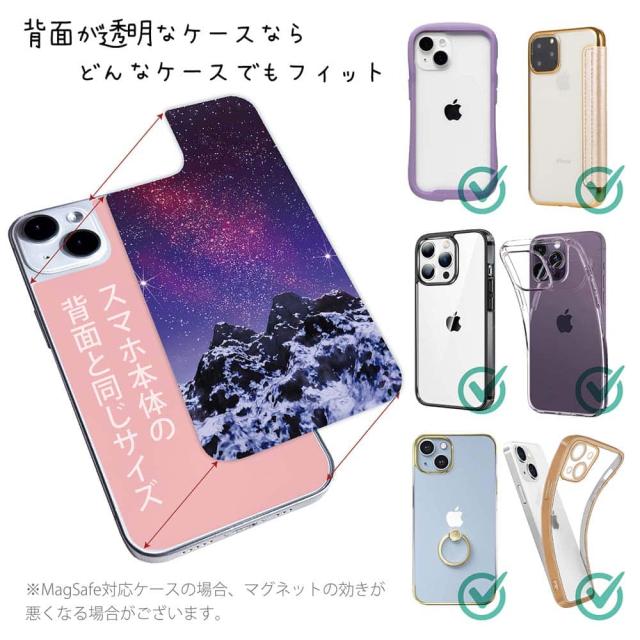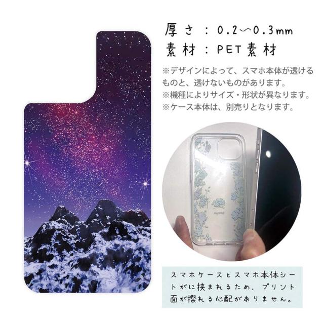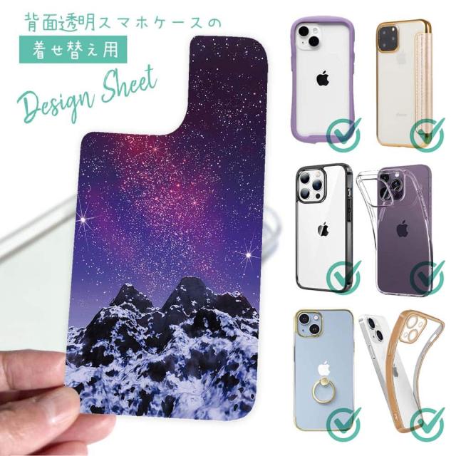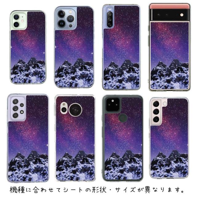 スマホケース iPhone Google Pixel Xperia Galaxy AQUOS arrows 着せ替え シート インナーシート スマホカバー 背面 透明 クリア オリジナル デザイン 星柄 星空 宇宙 雪山の上の済んだ夜空