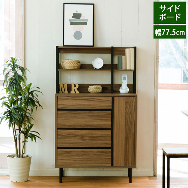 サイドボード 幅77.5cm 奥行35.5cm 4段 リビングボード 脚付き ハイタイプ ワイドチェスト ダークブラウン Fresser FMC-0005-JK