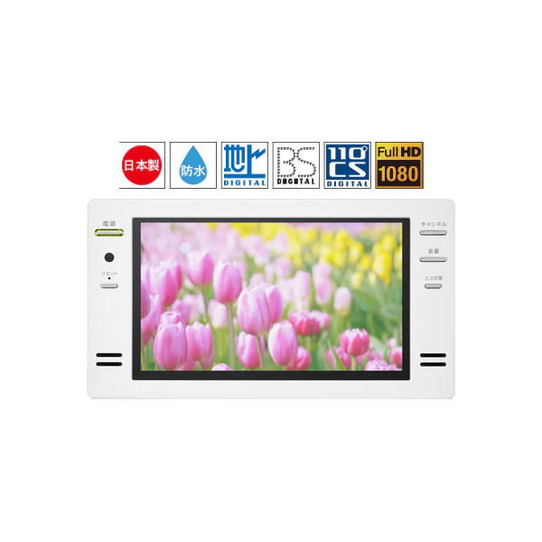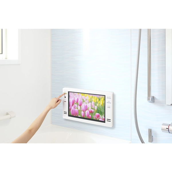 ツインバードの「16V型浴室テレビ」は、日本製の浴室テレビで、地デジ・衛星放送(BS・110度CS)の受信に対応。モニターはJIS IPX5相当、リモコンはJIS IPX7相当の防水設計。操作ボタンは操作性を重視した大きめ設計。約207万画素の解像度の高精細フルハイビジョン液晶パネルを採用し、おうちのお風呂時間をお楽しみ頂ける浴室テレビです。