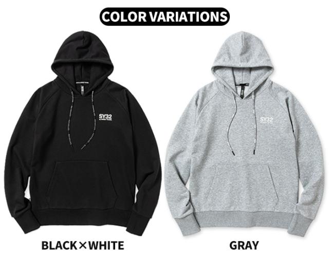 SY32 エスワイサーティトゥ パーカー フーディー フード プルオーバー スウェット トレーナー 長袖 ロゴ 定番 おしゃれ メンズ 男性 大人 スポーツ スポーティ サッカー フットサル ランニング ウェア トレーニング トレーニングウェア アメカジ ストリート きれいめ カジュアル ブランド シンプル 丈夫 頑丈 タフ プレゼント 黒 白 ブラック ホワイト