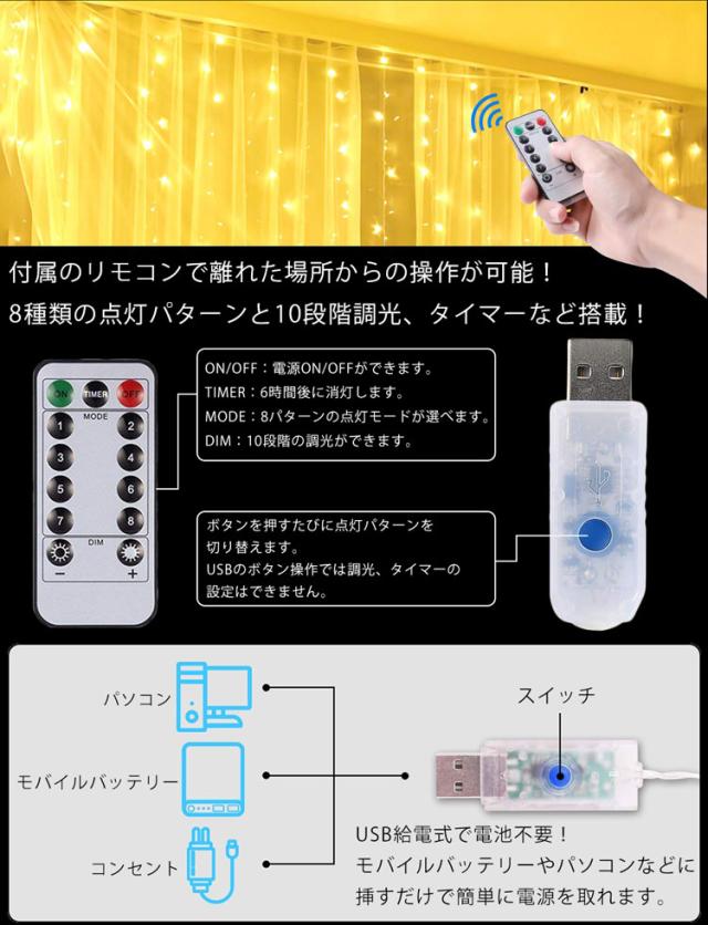 イルミネーションライト 10m LED ライト リモコン 10段階 調光 防水 自由自在 電飾 装飾 結婚式 ガーデンライト クリスマス パーティー 屋内 屋外
