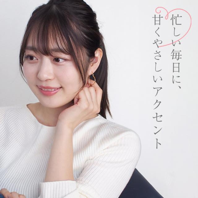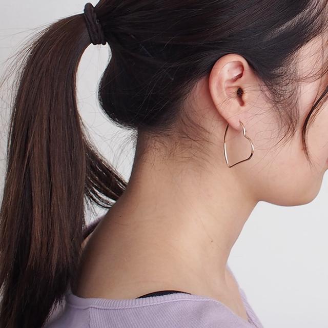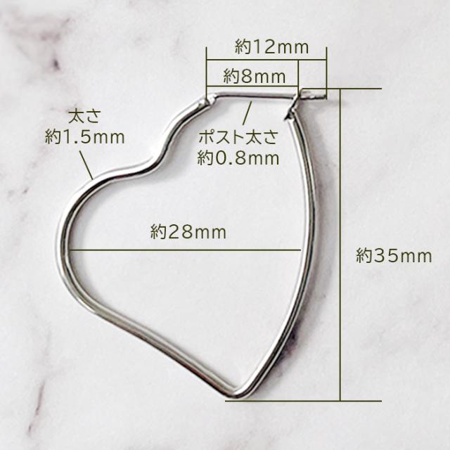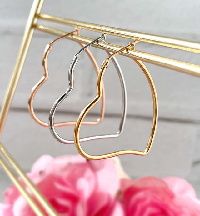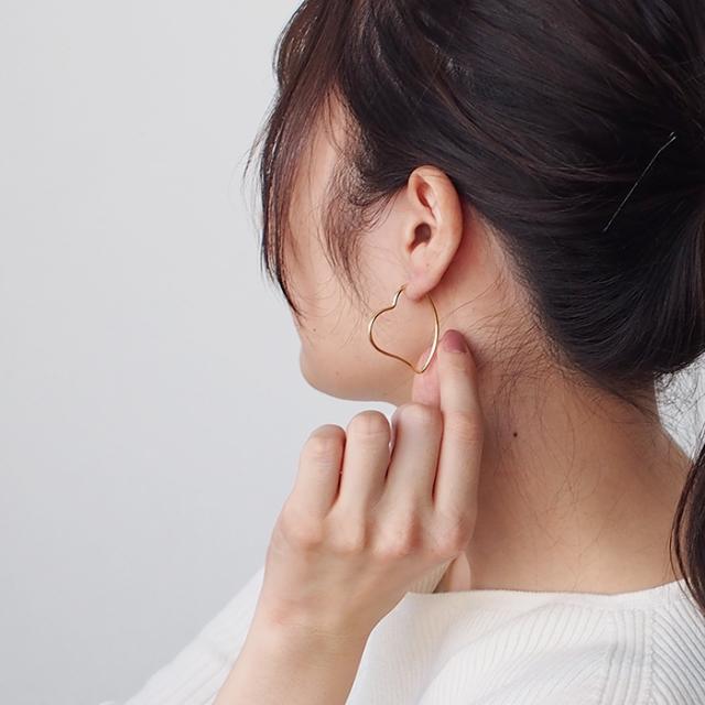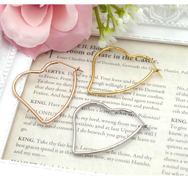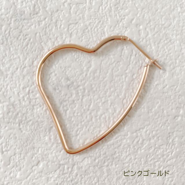| ハート型 フック ピアス 大きめ シンプル ゆるやか 上品 女性 レディース 金属アレルギー対応 ステンレスピアス |