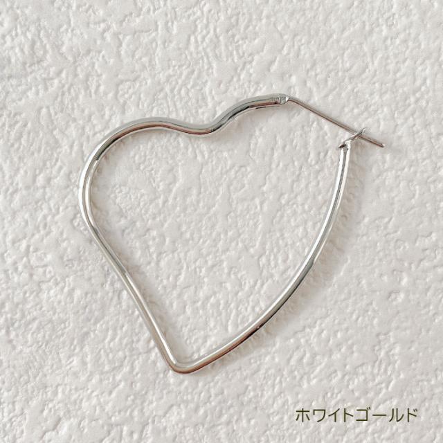 ピアス レディース 大ぶり ハート型フック 金属アレルギー フープ サージカル ステンレス ゴールド ホワイトゴールド ピンクゴールド 片耳 医療用 輪っか リング