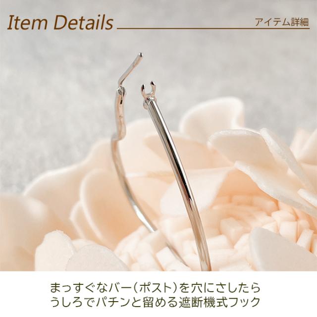 バネや引っ掛けるタイプではなく、若干短めながら真っすぐのポスト(棒)を穴に通して耳たぶの後ろでパチッと留める遮断機式のため、輪っかタイプが初めての方にも 扱いやすいピアスです。