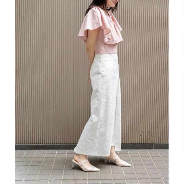 すっきりとしたウエストデザインなので、トップスをインして着ていただくのがおすすめです。