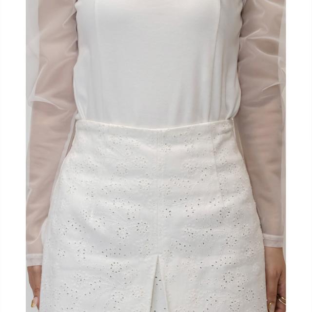大胆なフェイクスリットデザインがスタイルをより綺麗に魅せてくれるスカート
