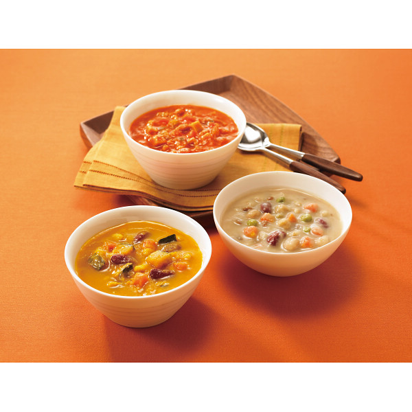 トマト、きのこ、豆、かぼちゃの各スープの味わいが手軽に楽しめます。