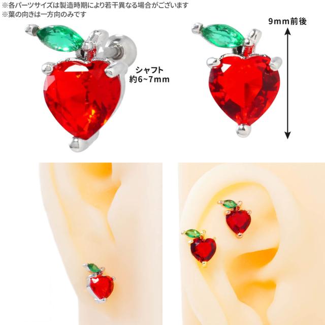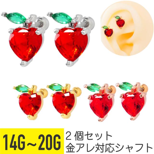2個セット アップル ビジュー ストレートバーベル 14G 16G 18G 20G サージカルステンレス ジュエル ヘリックス 軟骨ピアス ボディピアス