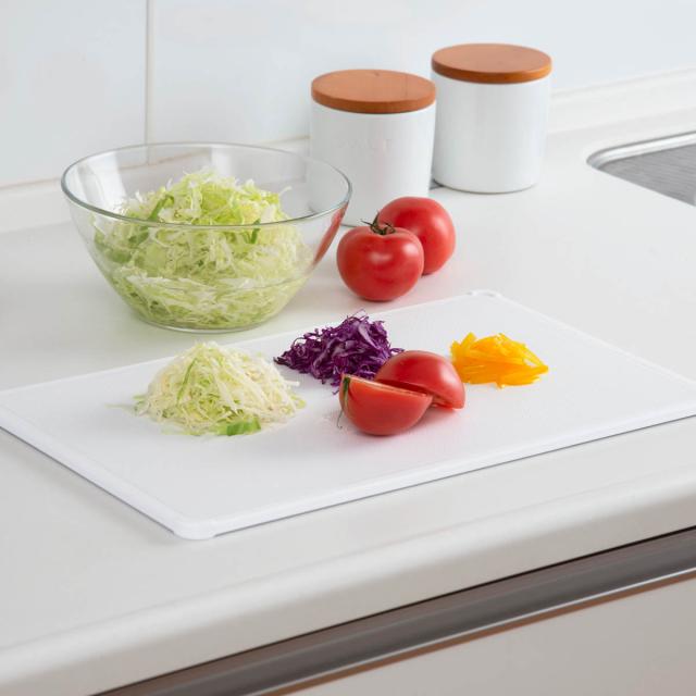 カットスペースが広く、切った食材をまな板の上に置いたまま、他の食材をカットすることができる大きめサイズです。