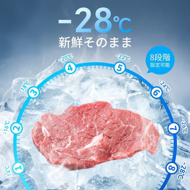 「食材をまとめて冷凍したいのに、うまくいかない…」→細かな温度設定が可能! 市販唯一の8段階温度調整で、自分好みの冷却環境を実現できます。 最低-28℃の強力冷凍で、急な大量買い物後もまとめて一度に冷凍できます。 食材の鮮度や栄養をしっかりキープし、美味しさを長期間守ります。