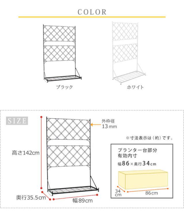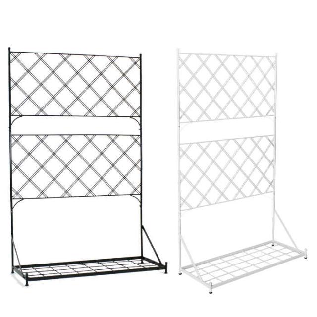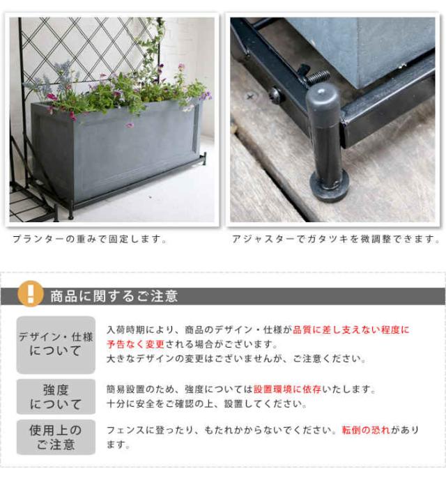 ■商品名:プランター台付フェンス ロータイプ W890×D350×H1415mm ラティス トレリス スチール アイアン ベランダ バルコニー テラス 庭 ガーデン ハンギング 簡単設置 アーガイル