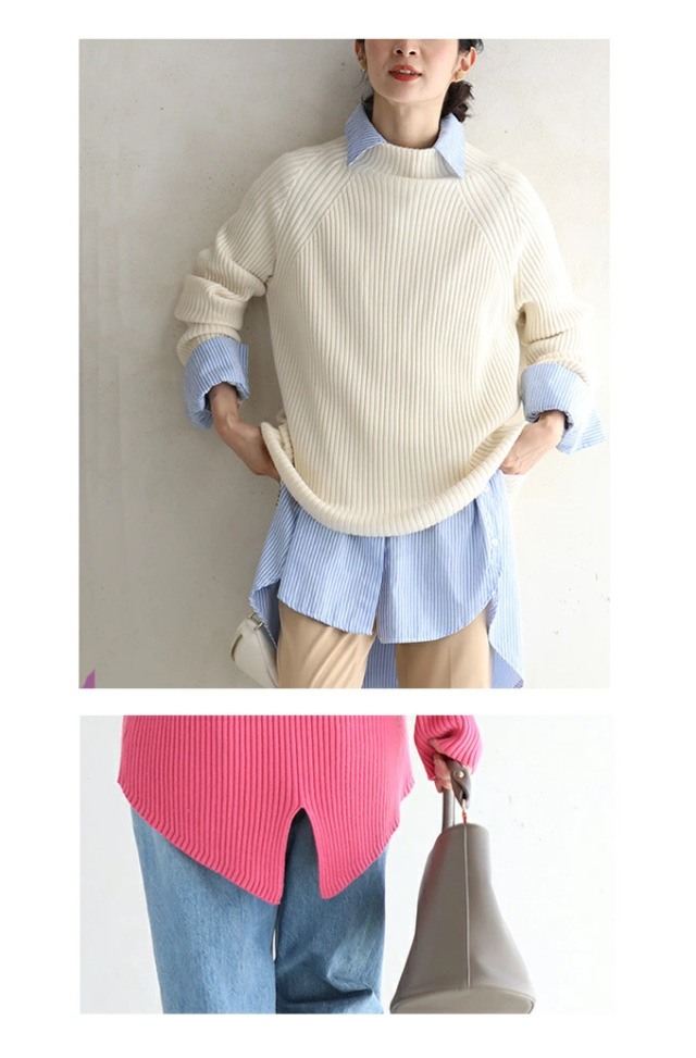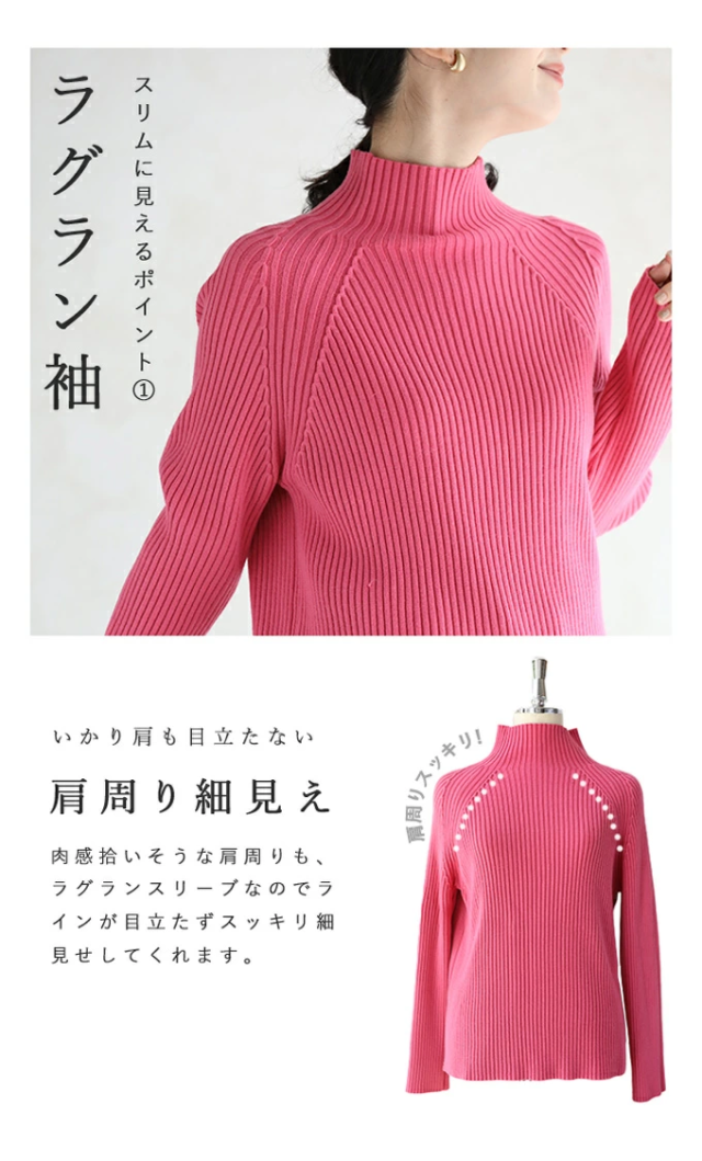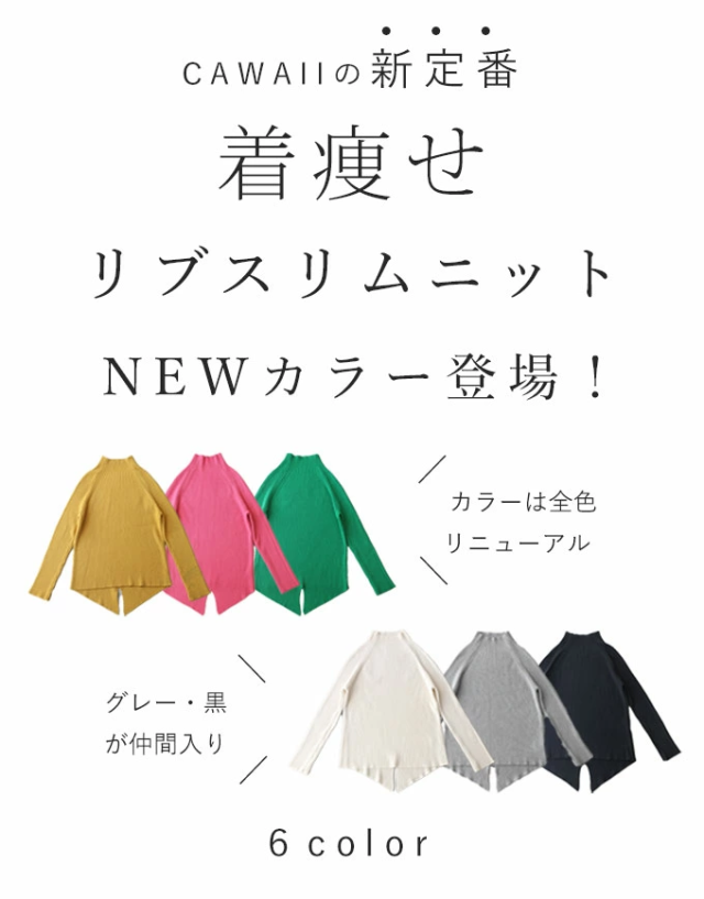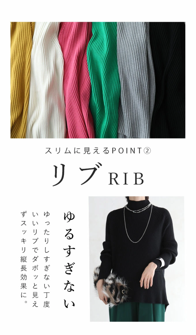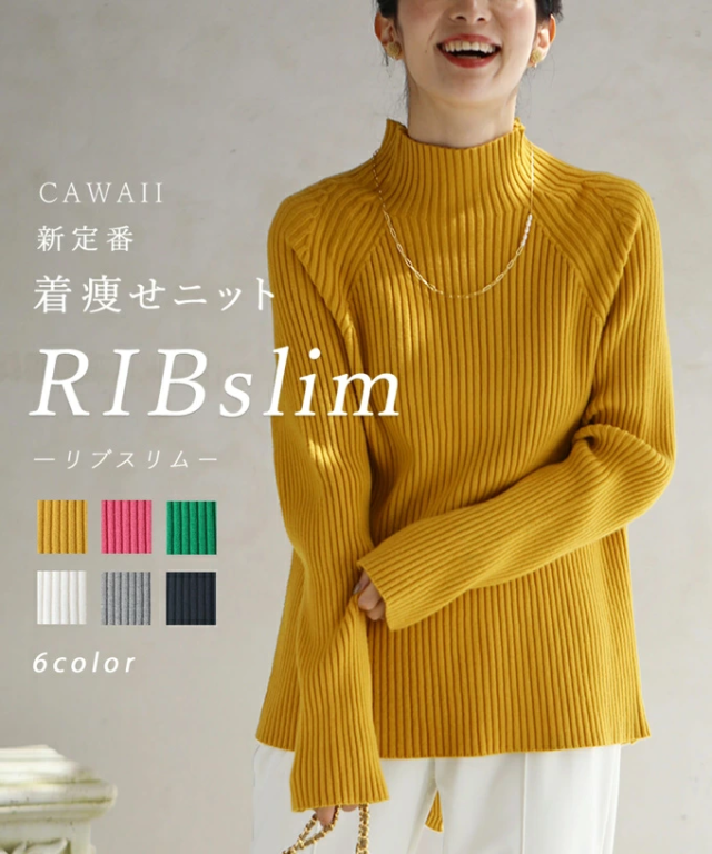 再入荷11月4日 新定番着痩せニット RIBslimリブスリム (S~3L対応) w54524ss cawaii ニット 長袖 リブニット 体型カバー カラーニット チュニック ビビットカラー ラグラン袖 ゆったり 春 秋冬 レイヤード 上品 カジュアル 50代 60代 40代 30代 母の日