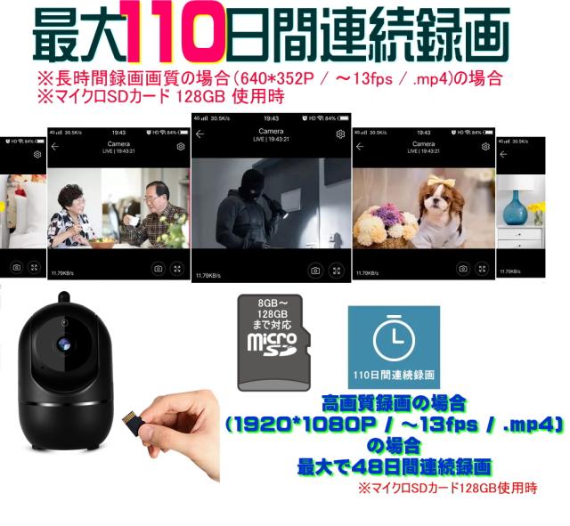 高画質の1080P画質でも48日間の記録(1152時間録画)ができます。