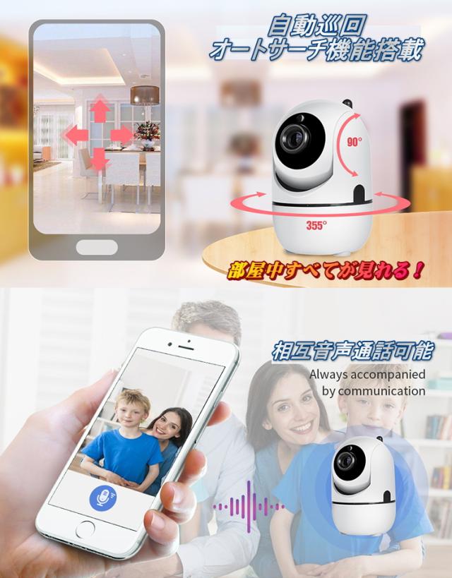 自動追尾機能搭載・赤外線ナイトビジョン・長期間録画・相互音声通話・遠隔スマホ監視・動体検知プッシュ通知
