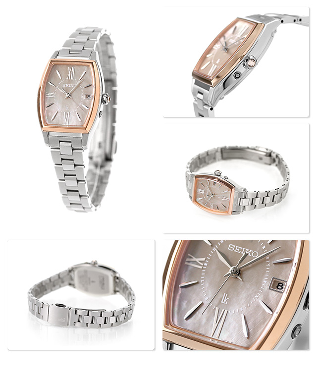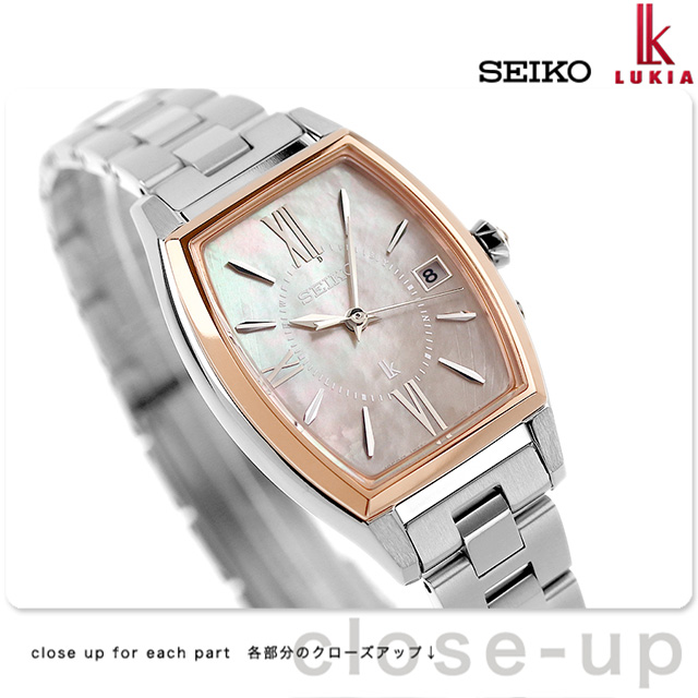 正規品 7年保証キャンペーン 送料無料 セイコー ルキア Grow チタン 日本製 電波ソーラー レディース 腕時計 SSQW072 SEIKO LUKIA アナログ ピンクブラウンシェル ◆セイコールキアから、真っ直ぐに凛と咲く「カラーリリー」をデザインモチーフにしたソーラー電波が登場。成長し、変化していく自分を後押ししてくれるような時計です。「カラーリリー」のフォルムをモチーフにしたりゅうずは、円錐状に広がるフォルム、さらにカットを入れることでカラーの花を表現。花を見立ててセッティングしたカットガラスが腕元に華やぎをもたらしてくれます。ワークシーンのジャケットスタイルからオフのワンピーススタイルまでどんなスタイルでも合わせやすいデザインです。ダイヤルベースは、上品な華やかさをもたらしてくれる白蝶貝。花びらの質感をイメージした曲線模様をさりげない透明印刷で表現しています。インデックスはまっすぐに咲く花の佇まいをイメージした細身のオリジナルローマフォントをレイアウト。 発売日:2023年02月発売