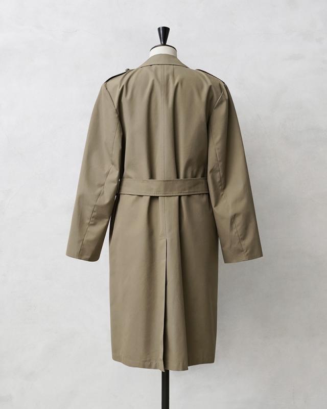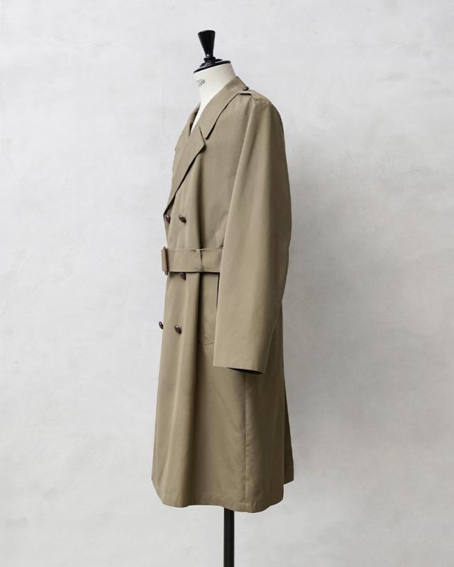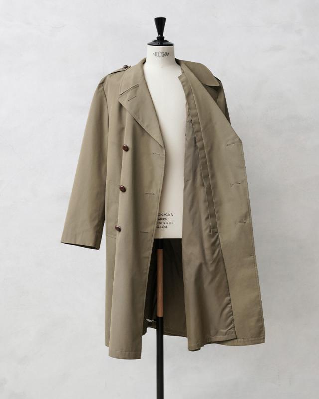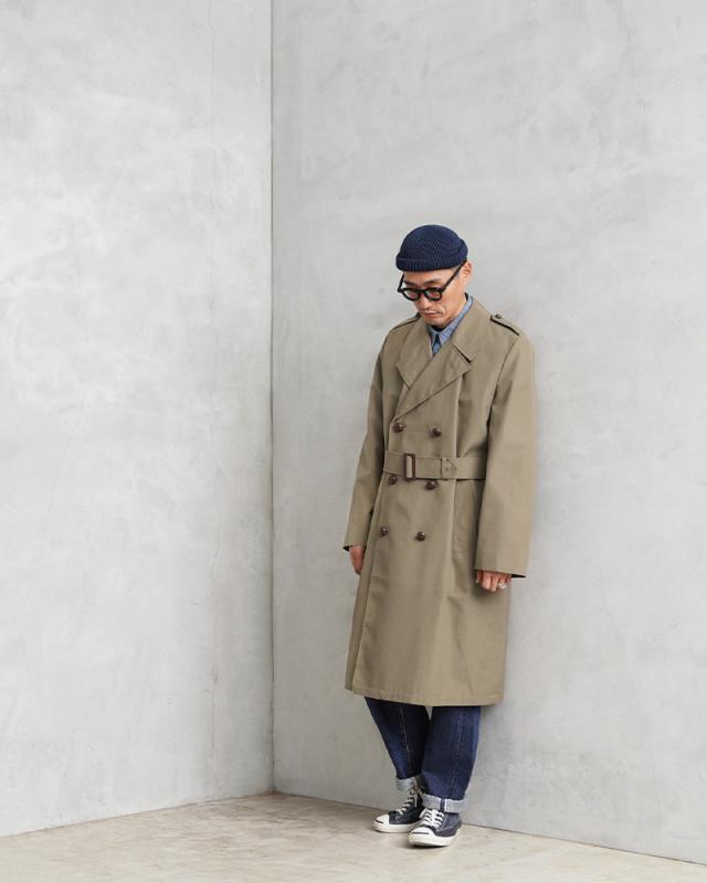 オランダ軍から1970年代前後の希少なロングコートが入荷しました。トレンチコートをベースとしたデザインのクラシックな雰囲気漂う仕上がりのコートです。幅広のラペルにミリタリーコートらしいダブルブレストのデザインが前を開けても閉めてもバランスよく着こなせる1枚です。ウエストベルトが付属していますのでベルトを締めるとより上品な印象を与えます流行に左右されないトラッドスタイルに最適なコートです!