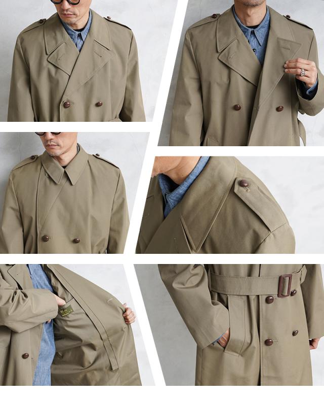 | 商品説明 | リジェクト 訳あり品 実物 USED オランダ軍 DOUBLE BREASTED トレンチコートのご紹介です。 オランダ軍から1970年代前後の希少なロングコートが入荷しました。 トレンチコートをベースとしたデザインのクラシックな雰囲気漂う仕上がりのコートです。 幅広のラペルにミリタリーコートらしいダブルブレストのデザインが前を開けても閉めてもバランスよく着こなせる1枚です。ウエストベルトが付属していますのでベルトを締めるとより上品な印象を与えます。ウエストベルトは取り外すことも可能ですのでその日の気分で使い分けて下さい。 適度な撥水性がある素材なので、多少の雨であればレインコートの役割も果たしてくれそうです。ウエスト部分にはハンドウォーマーポケットと内側にはインナーポケットが2箇所備わっています。滑りの良いポリエステルの裏地が取り付けられていますのでさらっと着心地の良い着用感です。バックにはセンターベントがデザインされています。寒い日には首元までボタン留めできる仕様です。 落ち着きのあるベージュ系のカーキで、カジュアルにもフォーマルにも着て頂けますし、スーツなどの上から着てもとても雰囲気が良いです。流行に左右されないトラッドスタイルに最適なコートで、スプリングコートとしても使える、放出が少なく希少価値の高いロングコートです! こちらはUSED品の中からボタンの欠損や錆や汚れ、破れなど、不具合のある商品を選別しております。多少のリペアを施していただいてからの着用、もしくはリメイク資材としてもおすすめです。ファーストクオリティの品質を強くお求めの方は念の為ご購入をお控えくださいますようお願い致します。 | ||||||||||||||||||||||||||||||||||||||||||||||||||||||||||||||||||||||||||||||||||||||||||||||||||||
