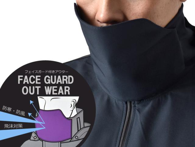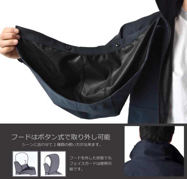 フード着脱式 フェイスガード付き 特殊機能素材 ストレッチ マウンテンパーカー【D6K】