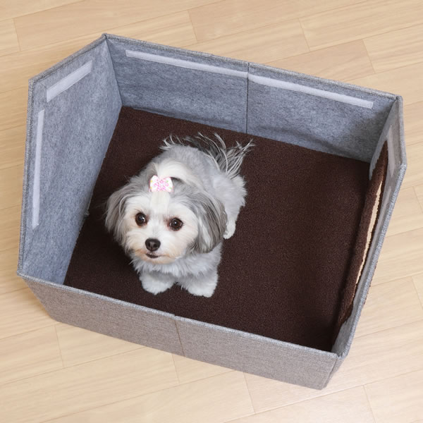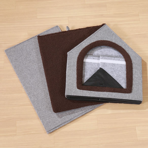 ハウス内のクッションにはポリエステルボアを使用。やわらかい質感でペットが快適にくつろげます。
