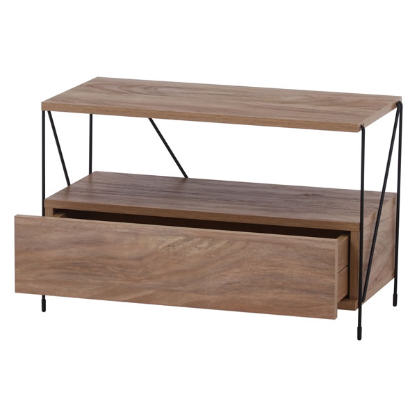 内寸幅53 ×奥行23.5 ×高さ7.5cm の引き出しがついているので、DVD やリビング小物などを隠して収納できます。