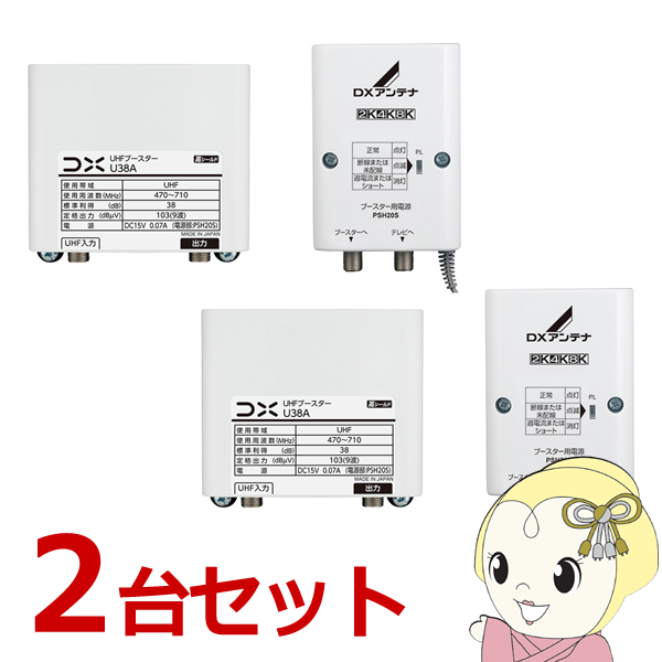在庫僅少 アンテナ お買い得 2台セット DXアンテナ 38dB型 UHFブースター U38A-2SET U43A後継機(利得切替無し)