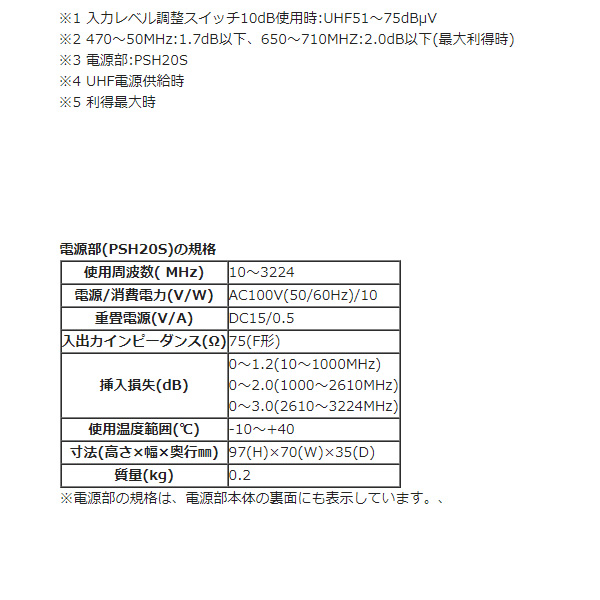 ※2 470〜50MHz:1.7dB以下、650〜710MHZ:2.0dB以下(最大利得時)