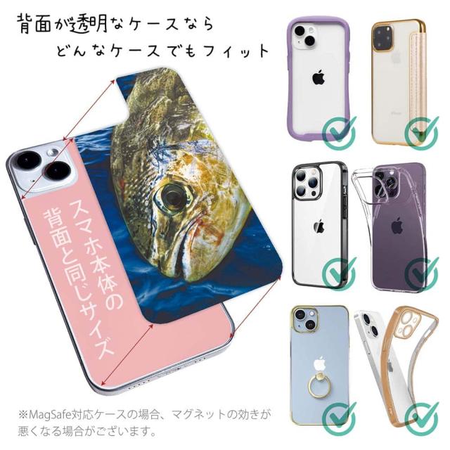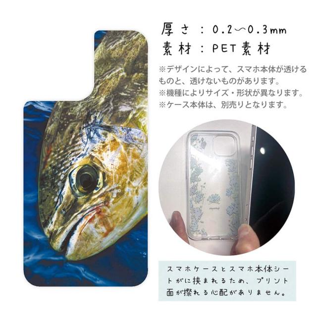 スマホケース iPhone Google Pixel Xperia Galaxy AQUOS arrows 着せ替え シート インナーシート スマホカバー 背面 透明 クリア オリジナル デザイン 釣り 魚 ルアー 表層の怪物シイラ