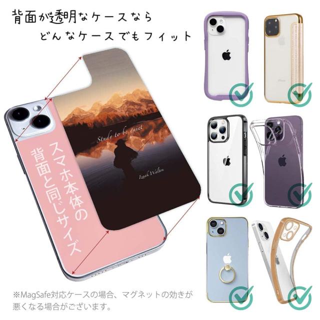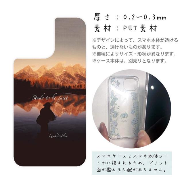 スマホケース iPhone Google Pixel Xperia Galaxy AQUOS arrows 着せ替え シート インナーシート スマホカバー 背面 透明 クリア オリジナル デザイン 釣り 魚 ルアー 穏やかなることを学べ(Study to be quiet)