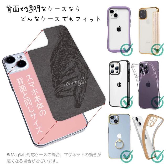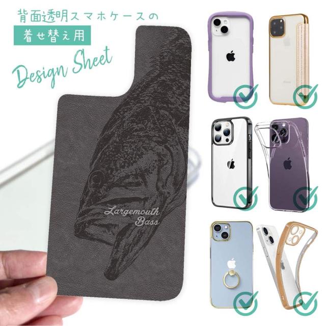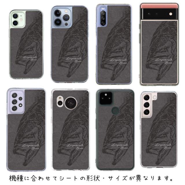 スマホケース iPhone Google Pixel Xperia Galaxy AQUOS arrows 着せ替え シート インナーシート スマホカバー 背面 透明 クリア オリジナル デザイン 釣り 魚 ルアー ブラックバス 灰