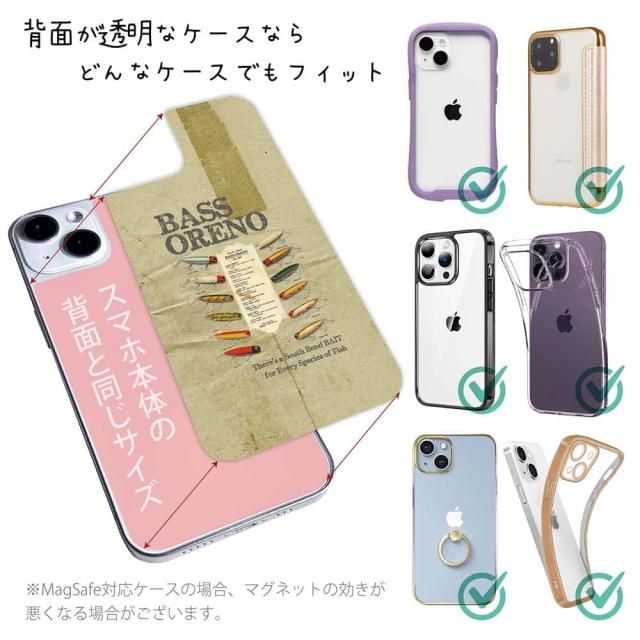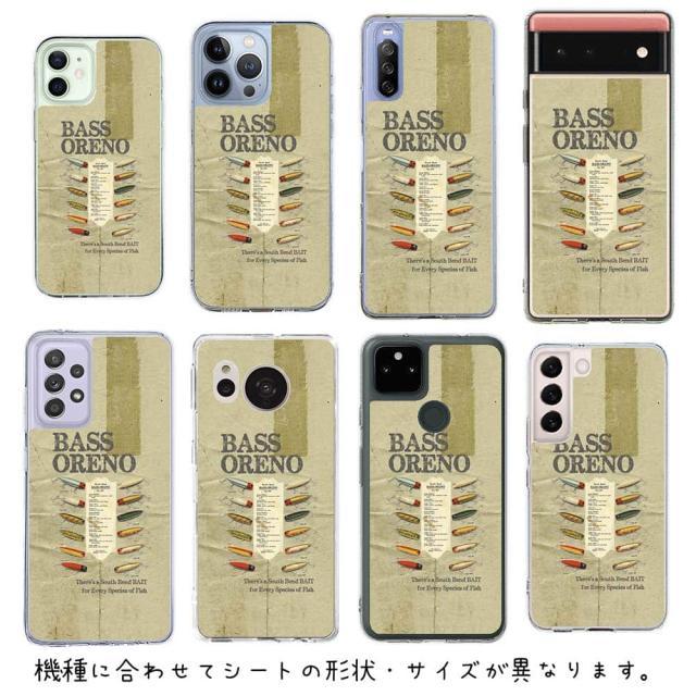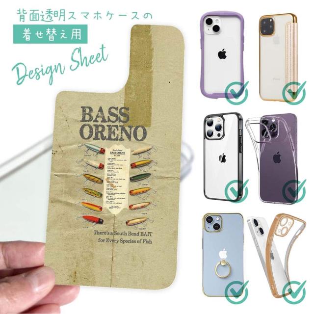 スマホケース iPhone Google Pixel Xperia Galaxy AQUOS arrows 着せ替え シート インナーシート スマホカバー 背面 透明 クリア オリジナル デザイン 釣り 魚 ルアー バスオレノ