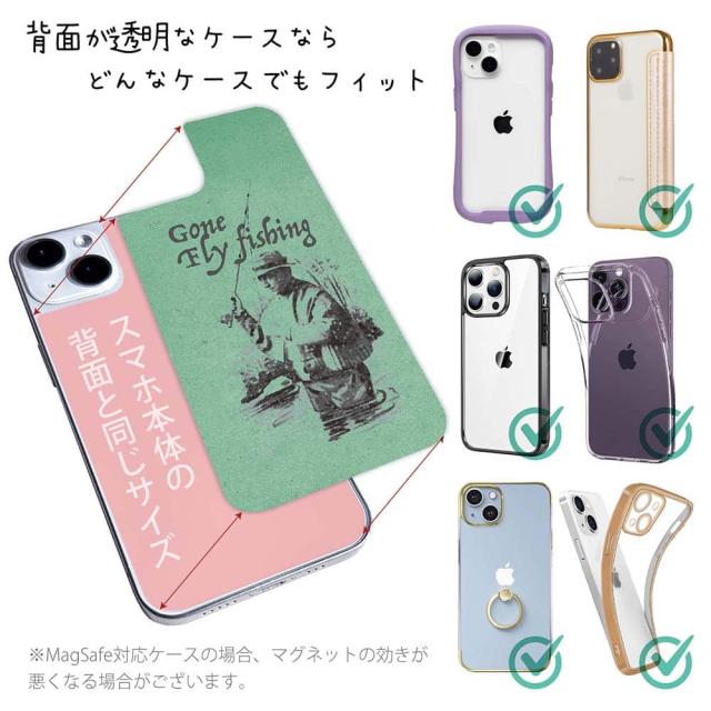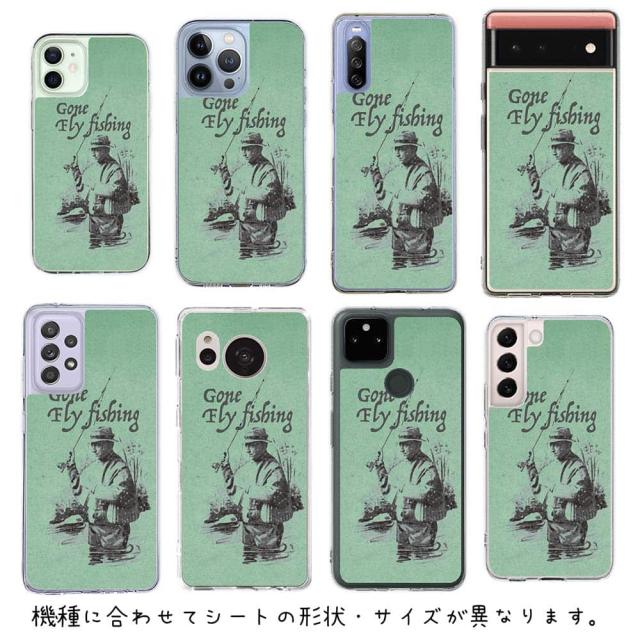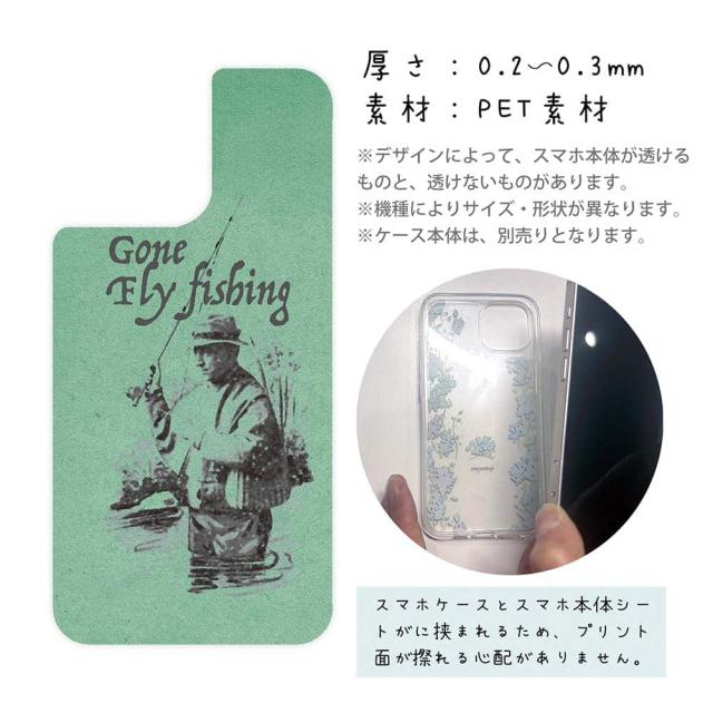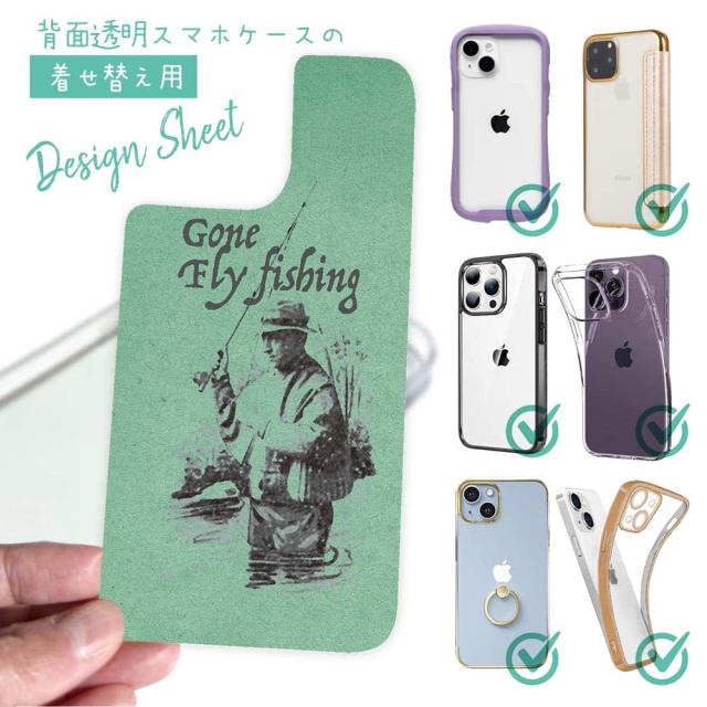 スマホケース iPhone Google Pixel Xperia Galaxy AQUOS arrows 着せ替え シート インナーシート スマホカバー 背面 透明 クリア オリジナル デザイン 釣り 魚 ルアー フライフィッシングとレインコート