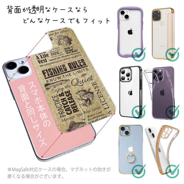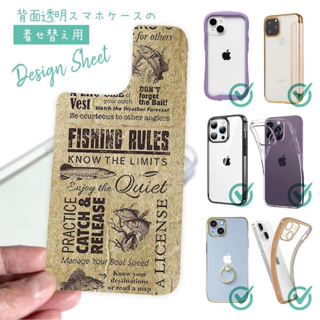 スマホケース iPhone Google Pixel Xperia Galaxy AQUOS arrows 着せ替え シート インナーシート スマホカバー 背面 透明 クリア オリジナル デザイン 釣り 魚 ルアー FISHING RULES