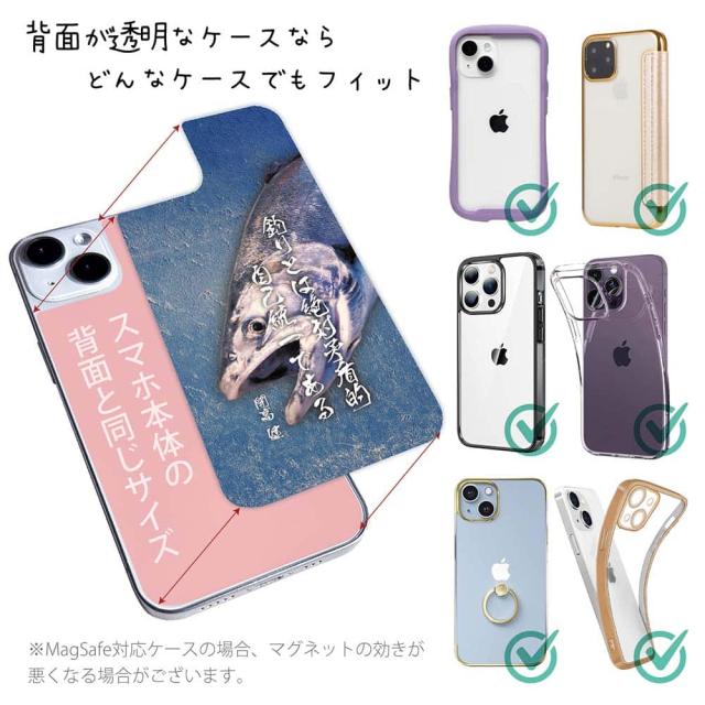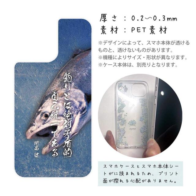 スマホケース iPhone Google Pixel Xperia Galaxy AQUOS arrows 着せ替え シート インナーシート スマホカバー 背面 透明 クリア オリジナル デザイン 釣り 魚 ルアー 釣りとは絶対矛盾的自己統一である。