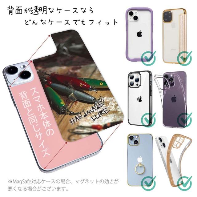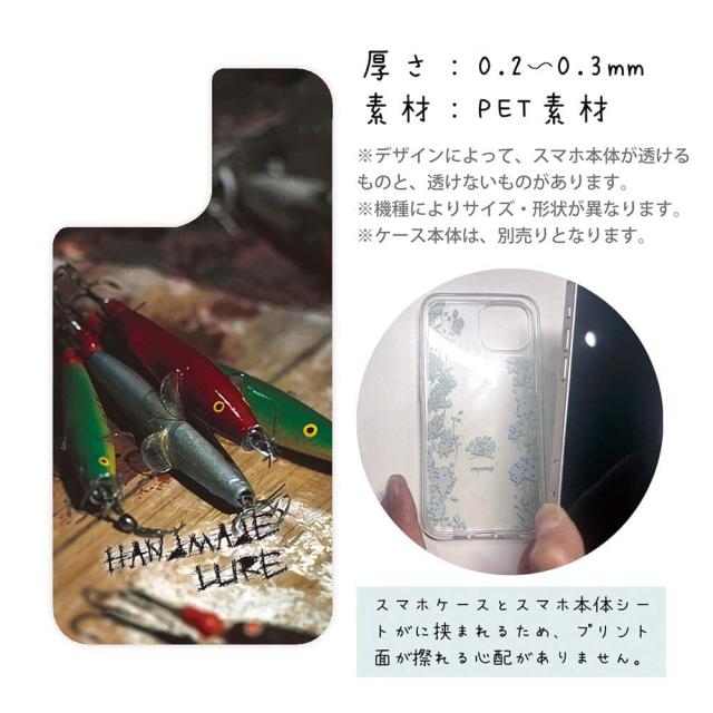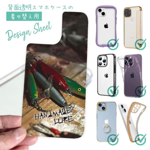 スマホケース iPhone Google Pixel Xperia Galaxy AQUOS arrows 着せ替え シート インナーシート スマホカバー 背面 透明 クリア オリジナル デザイン 釣り 魚 ルアー ハンドメイドルアー