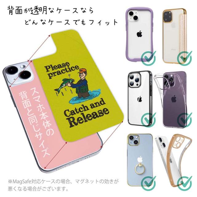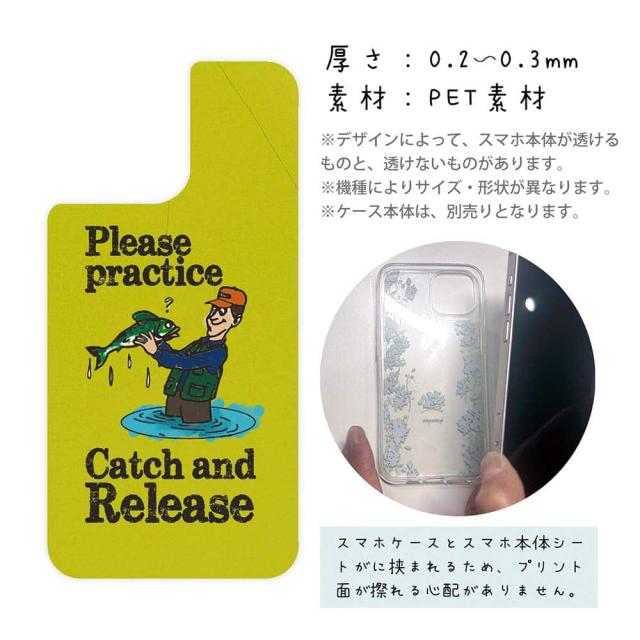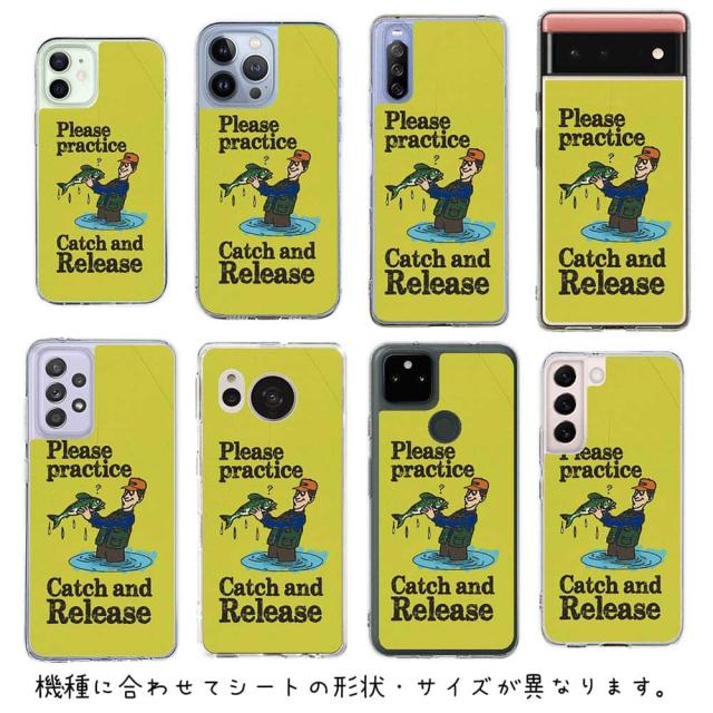 スマホケース iPhone Google Pixel Xperia Galaxy AQUOS arrows 着せ替え シート インナーシート スマホカバー 背面 透明 クリア オリジナル デザイン 釣り 魚 ルアー キャッチアンドリリースを教えて?