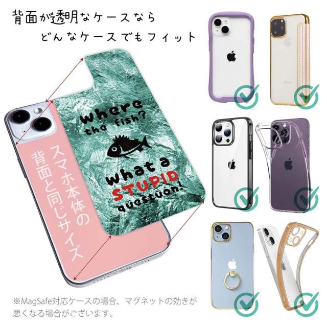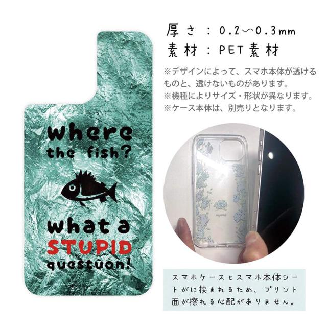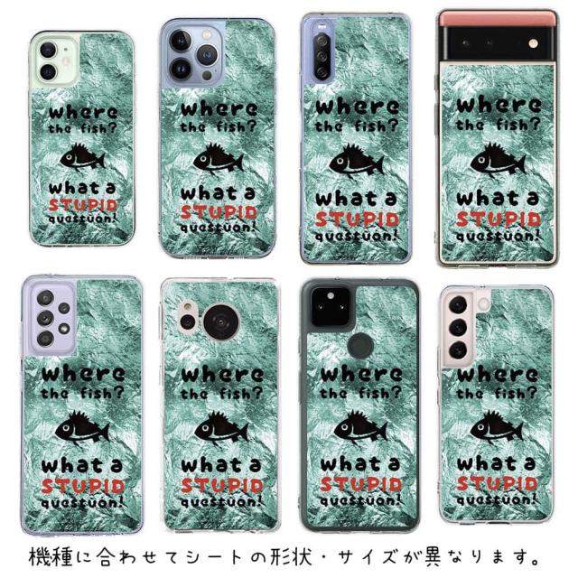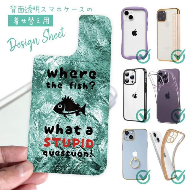スマホケース iPhone Google Pixel Xperia Galaxy AQUOS arrows 着せ替え シート インナーシート スマホカバー 背面 透明 クリア オリジナル デザイン 釣り 魚 ルアー 魚はどこへ行った?