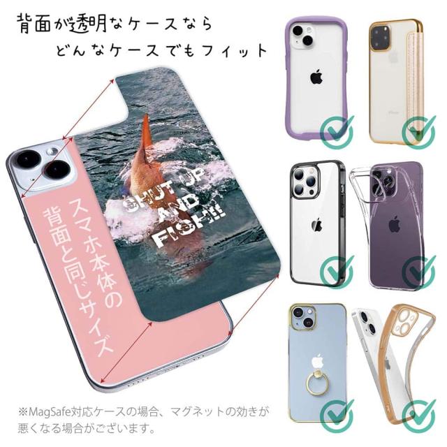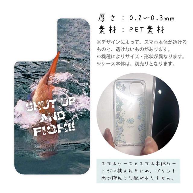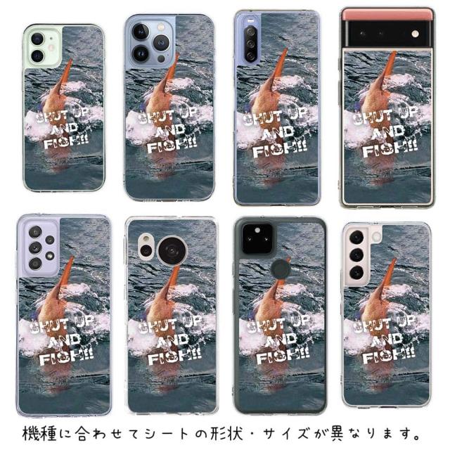 スマホケース iPhone Google Pixel Xperia Galaxy AQUOS arrows 着せ替え シート インナーシート スマホカバー 背面 透明 クリア オリジナル デザイン 釣り 魚 ルアー 魚が掛かったので黙ってて!