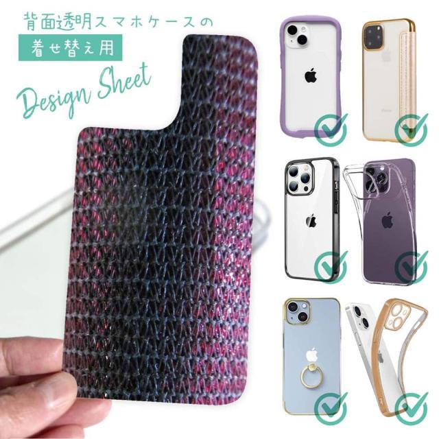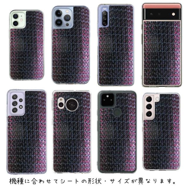 スマホケース iPhone Google Pixel Xperia Galaxy AQUOS arrows 着せ替え シート インナーシート スマホカバー 背面 透明 クリア オリジナル デザイン 釣り 魚 ルアー エギ柄 パープルラメ