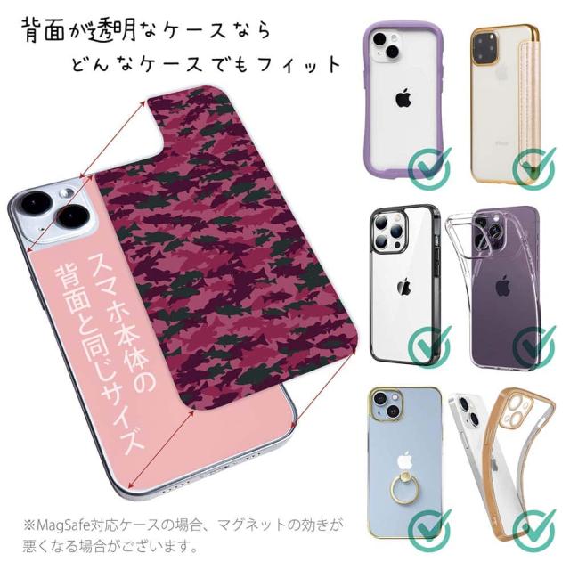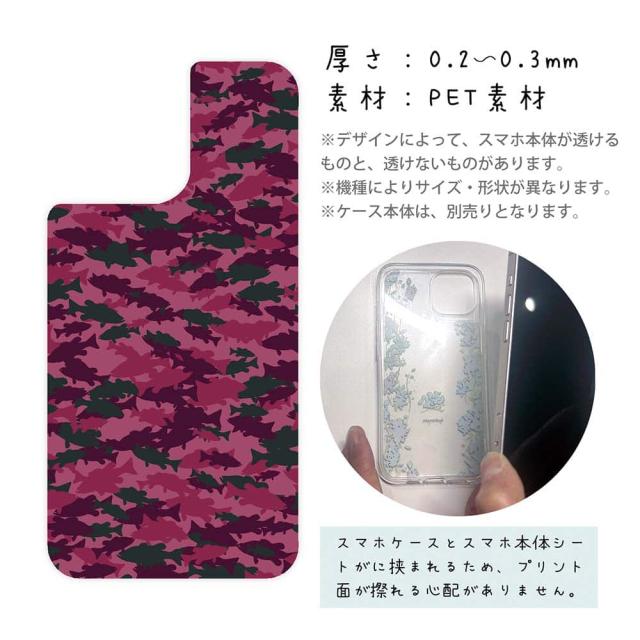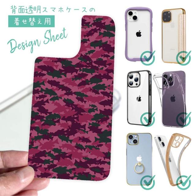 スマホケース iPhone Google Pixel Xperia Galaxy AQUOS arrows 着せ替え シート インナーシート スマホカバー 背面 透明 クリア オリジナル デザイン 釣り 魚 ルアー ブラックバス 迷彩柄 レッドカラー