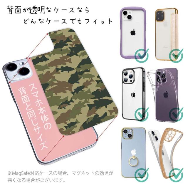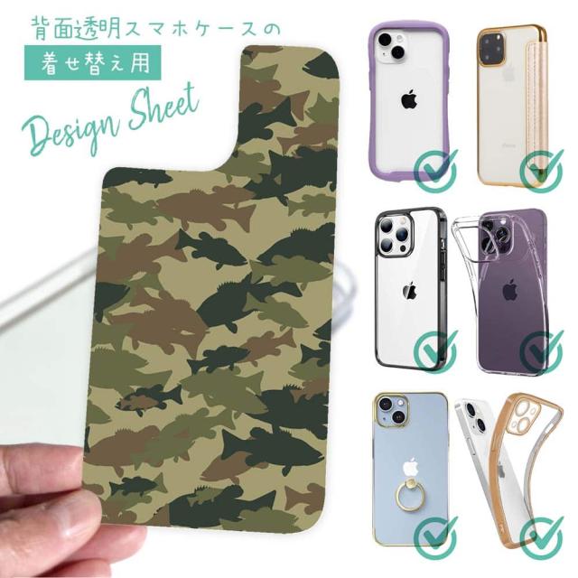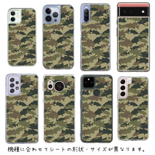 スマホケース iPhone Google Pixel Xperia Galaxy AQUOS arrows 着せ替え シート インナーシート スマホカバー 背面 透明 クリア オリジナル デザイン 釣り 魚 ルアー ブラックバス 迷彩大柄 アーミーカラー